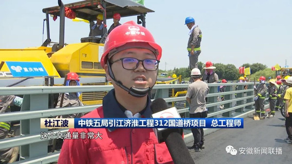 合肥西大門的312國道,交通量非常大,我們項目部也是攻堅克難,盡早地把這個橋開通,這個鋪裝完成以后,進行整個橋的動靜態(tài)試驗,七月下旬交工驗收。